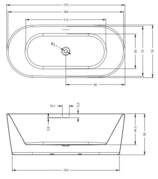 Отдельно стоящая белая глянцевая ванна RIHO Modesty 170х76 FALL своего названия: ванна сочетает в себе роскошный внешний вид с комфортом и удобством для пользователя, не будучи эксцентричной. Это ванна овальной формы с красивым тонким бортиком.
