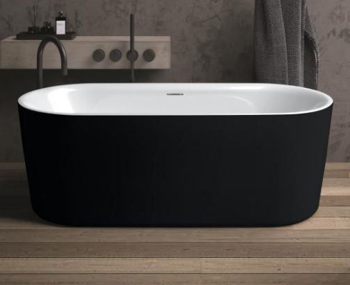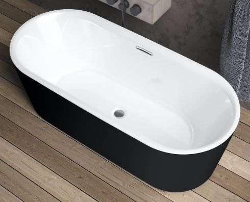 Отдельно стоящая чёрная/белая матовая ванна RIHO Modesty 170х76 BLACK VELVET FALL достойна своего названия: ванна сочетает в себе роскошный внешний вид с комфортом и удобством для пользователя, не будучи эксцентричной. Это ванна овальной формы с красивым тонким бортиком.