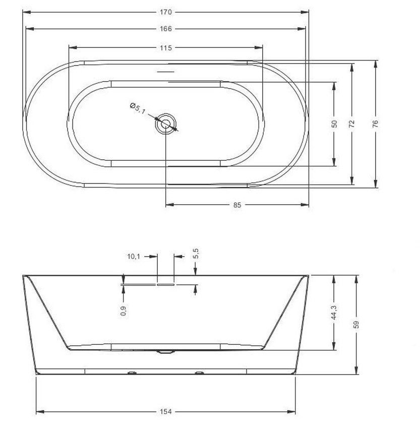 Отдельностоящая черно-белая глянцевая ванна Riho Modesty 170х76 достойна своего названия: ванна сочетает в себе роскошный внешний вид с комфортом и удобством для пользователя, не будучи эксцентричной. Это ванна овальной формы с красивым тонким бортиком.