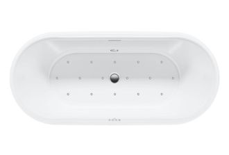 Слив перелив и опорная конструкция входят в комплект поставки. Модель укомплектована аэромассажной системой Riho Sparkle. Эта система включает в себя интуитивно понятный 4-кнопочный датчик управления, расположенный на краю ванны, и светодиодное освещение с хромотерапией.