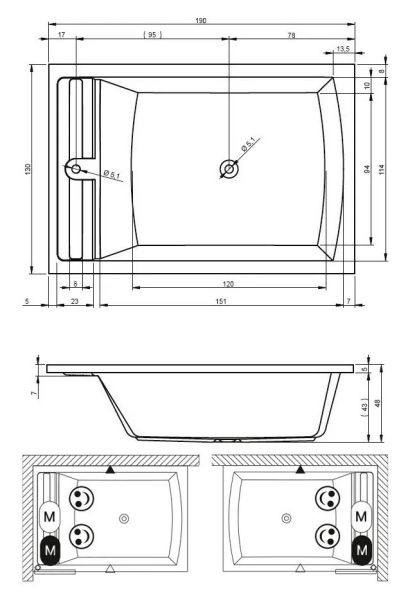 Материал непористый и гладкий, поэтому на нём не остаются известковый налёт и бактерии, поверхность ванны легко очищается.