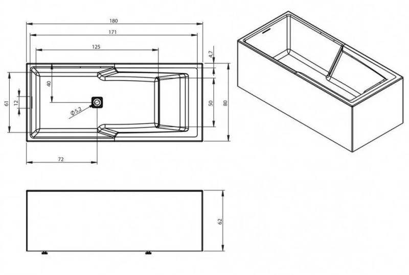 Длинная и короткая стороны ванны оснащены сразу отлитыми панелями, изготовленными из того же акрилового материала, что и ванна. Всё идеально, никаких швов!