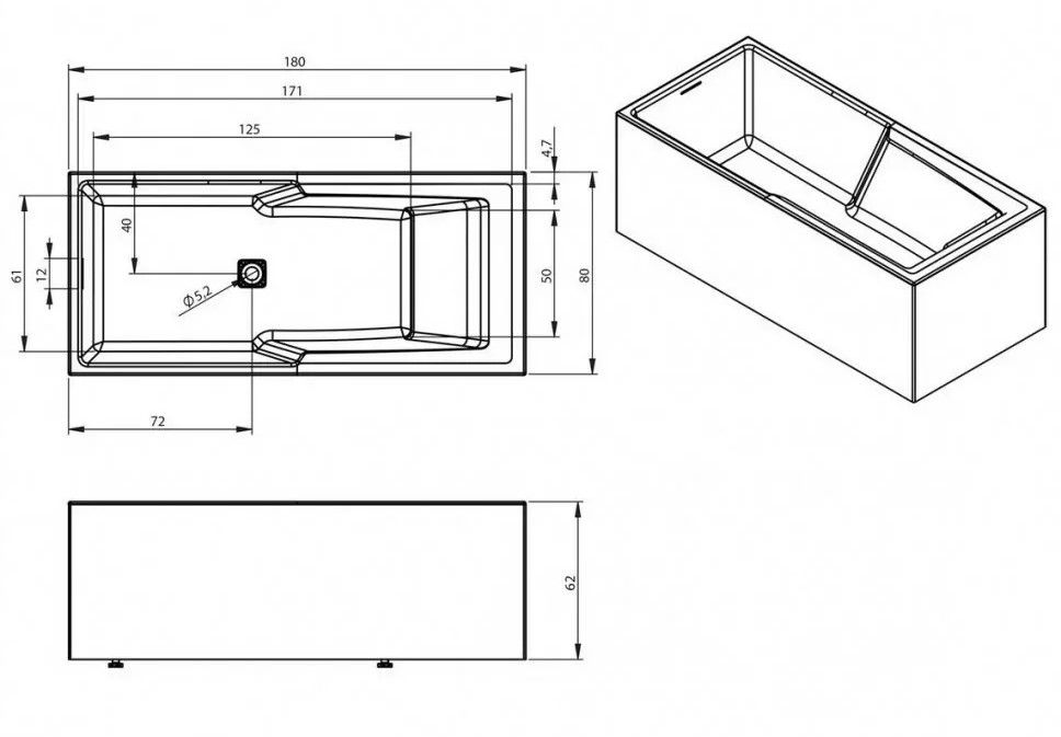 Длинная и короткая стороны ванны оснащены сразу отлитыми панелями, изготовленными из того же акрилового материала, что и ванна. Всё идеально, никаких швов!