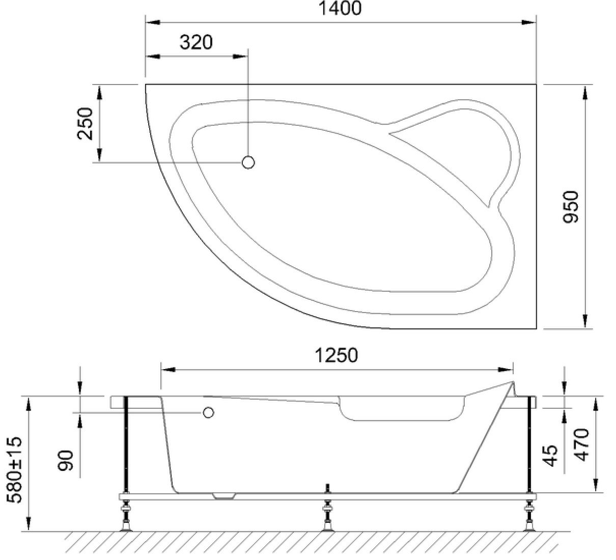 Акриловая угловая ванна ALPINE 140x95x58 имеет ассиметричную форму с четкими линиями изгибов что позволяет ей отлично гармонировать практически в любом интерьере. Анатомическая, округлая форма чаши позволяет комфортно разместиться в ней одному человеку, а диагональное расположение позволяет разместить в углу просторное сидение.