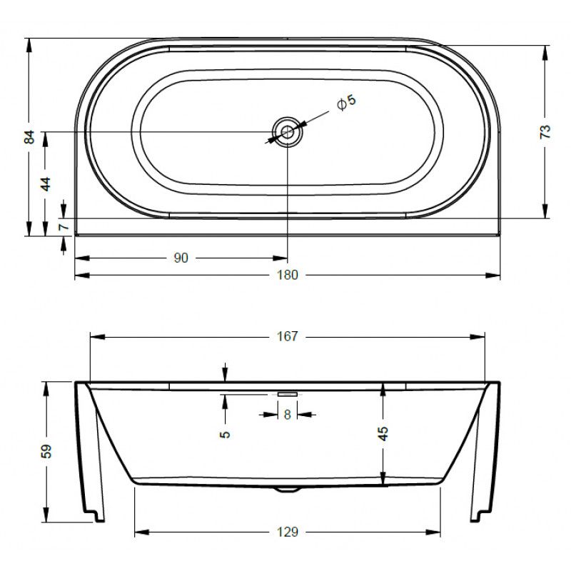 Акриловая ванна с подсветкой Riho Desire Back2Wall Glossy LED B089012005 180х84см светодиоды под ванной заполнение через перелив белый