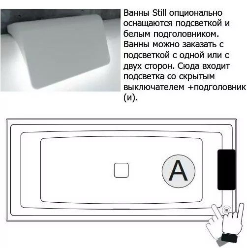 Акриловая ванна с подсветкой Riho Still Square LED B099003005 180х80см светодиоды и подголовник справа белый