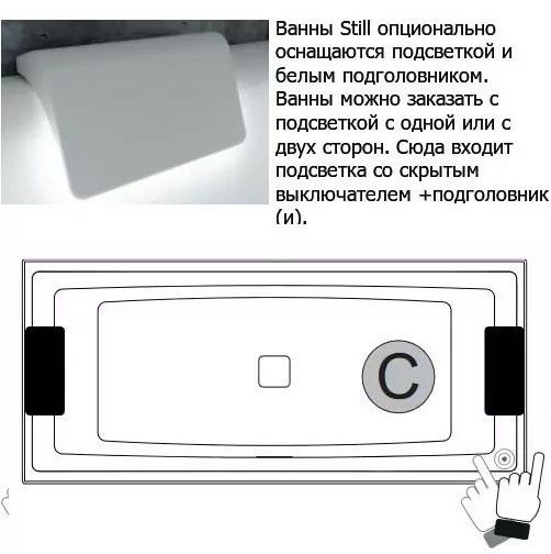 Акриловая ванна с подсветкой Riho Still Square LED Fall B100035005 170х75см светодиоды и подголовники с двух сторон заполнение через перелив белый