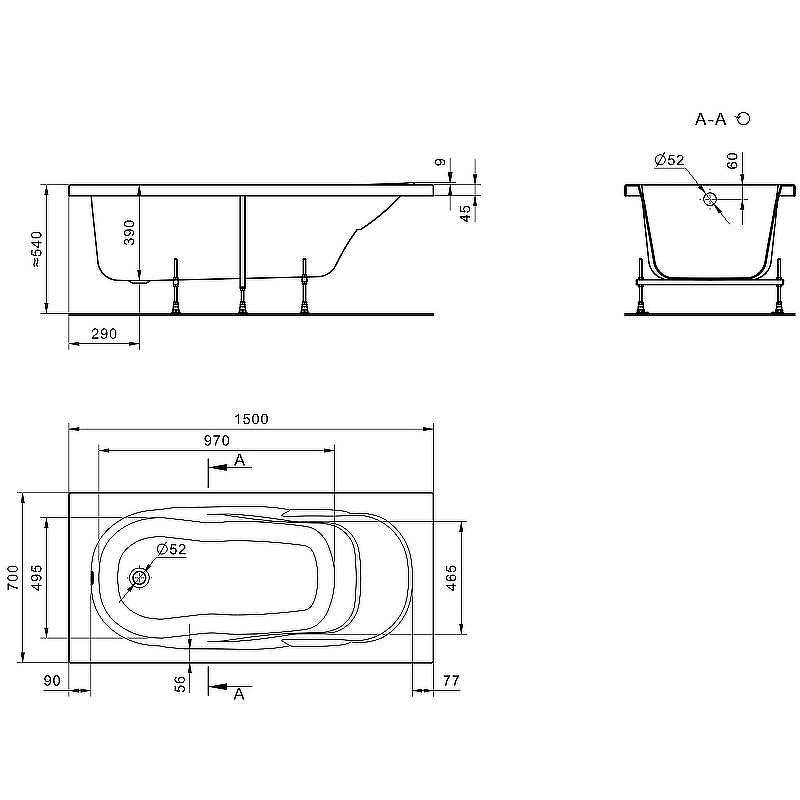 Акриловая ванна Santek Санторини 1WH302494 150х70 без гидромассажа Подробнее