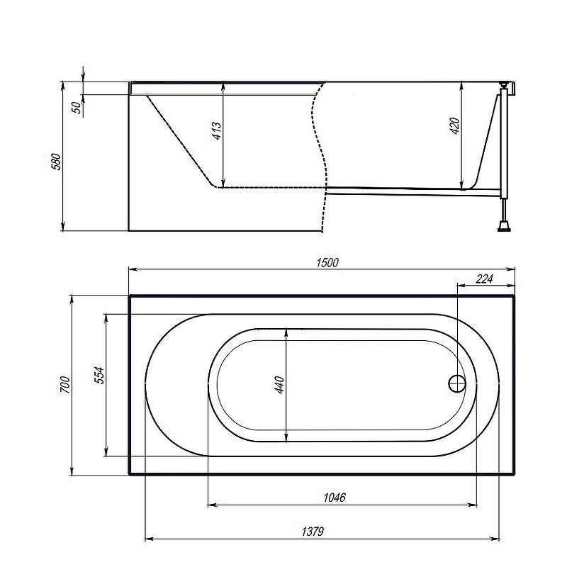 Акриловая ванна Timo Roha ROHA1570 150x70 см