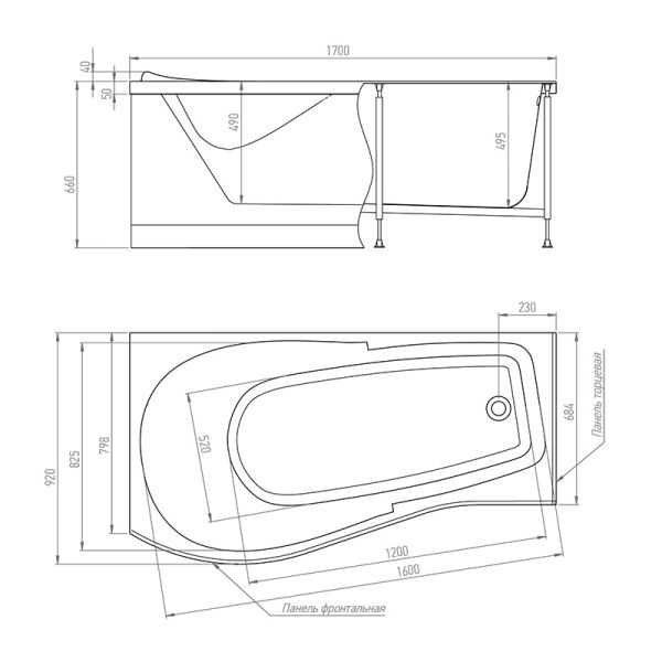 Акриловая ванна Timo Vino VINO1792L 170x92 см