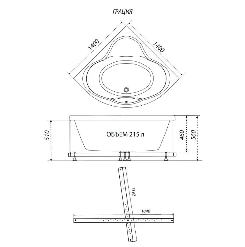 Акриловая ванна Triton Грация Щ0000048443 140 см на Х-каркасе белый