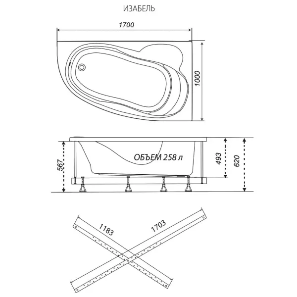 Акриловая ванна Triton Изабель Щ0000048749 левая 170x100 см на Х-каркасе белый
