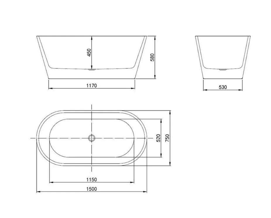 • Расположение слива: по центру.