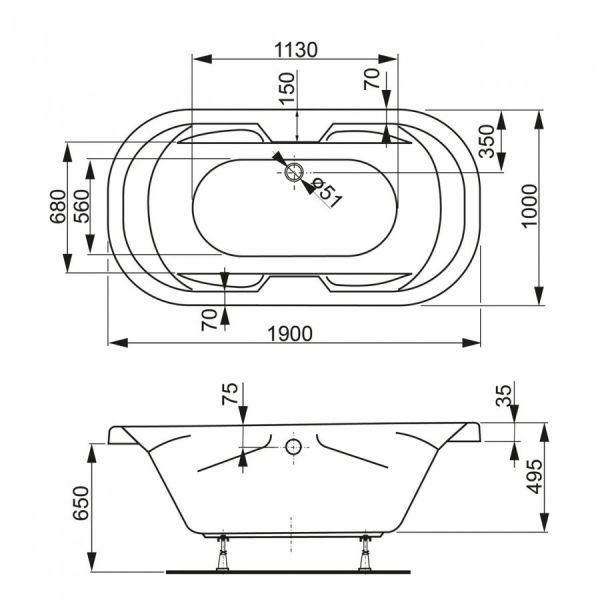 Акриловая ванна VagnerPlast Gaia VPBA191GAI7X-04 190x100см белый
