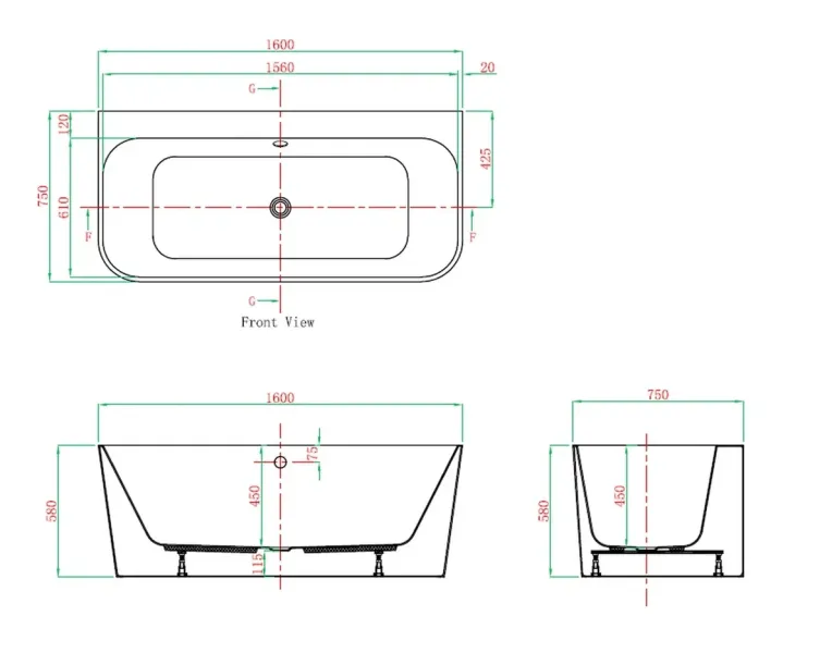 • Глубина ванны - 45 см
