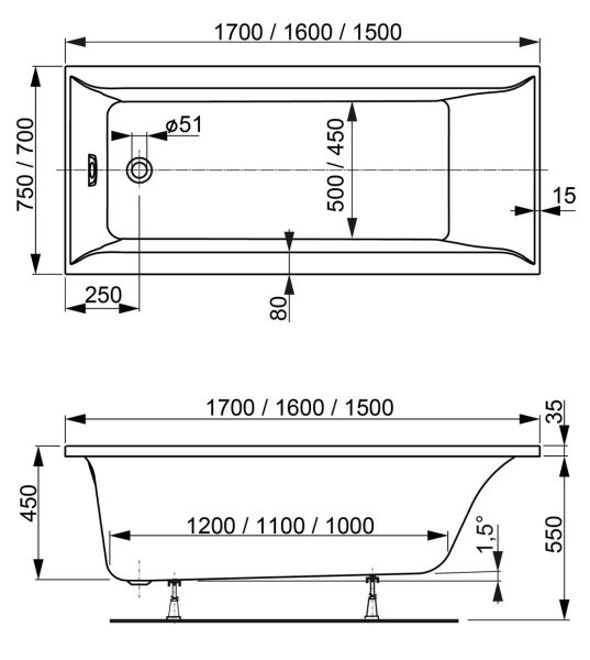 Акриловая ванна VagnerPlast Veronela VPBA167VEA2X-04 160x70см белый