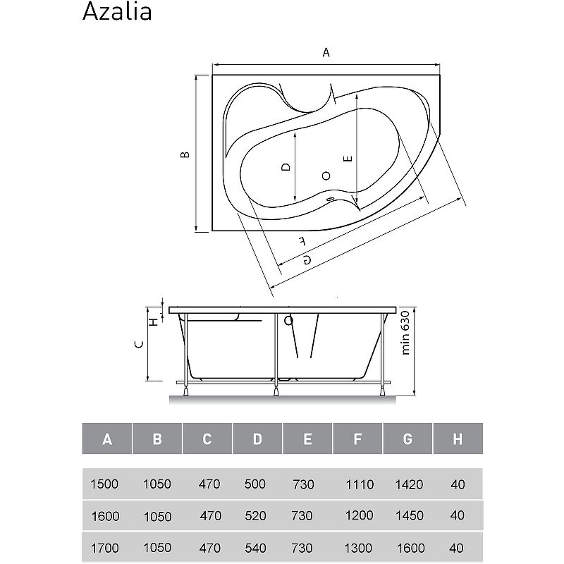 Высота ванны на каркасе: 63 см.