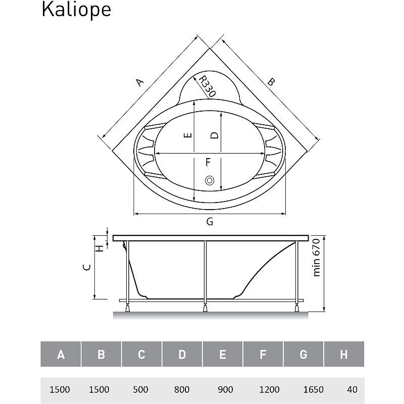 Акриловая ванна Vayer Kaliope 150x150 Гл000006523 без гидромассажа