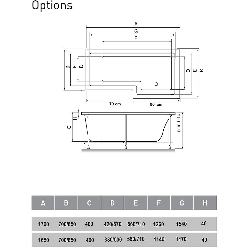 Высота ванны на каркасе: 61 см.