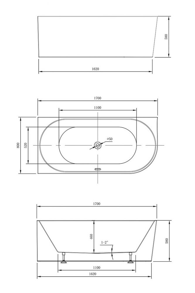 Акриловая ванна Vincea VBT-402-1700R 170 x 80 см