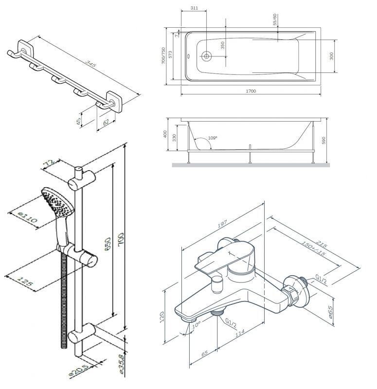Тип:ванна+набор