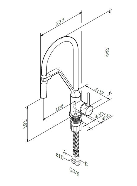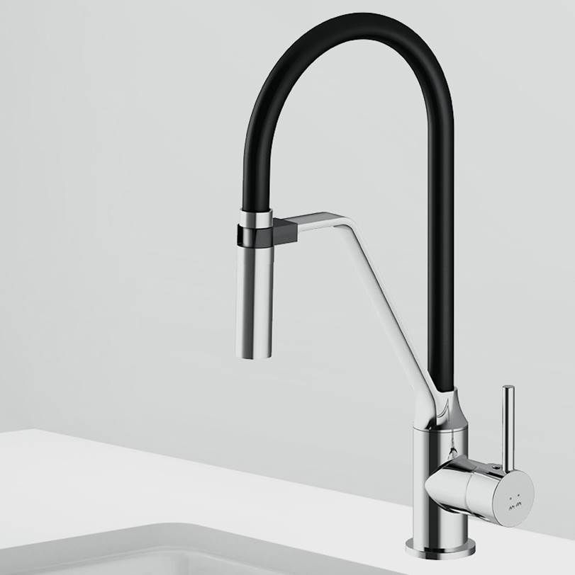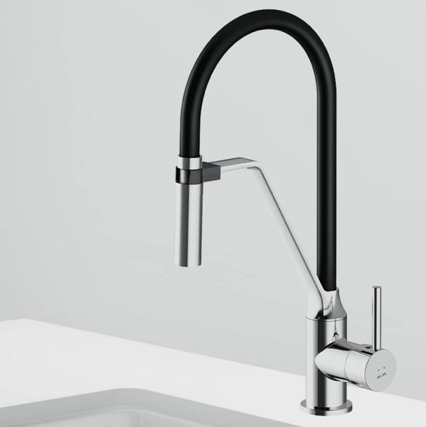 Стильный и функциональный смеситель для кухни с профессиональным изливом.Гибкий излив значительно расширяет зону использования смесителя. Гарантирует легкий уход за мойкой и наполнение емкостей любой высоты. Излив изготовлен из термостойкого силикона. Силикон абсолютно безопасен при контакте с водой, т.к. в составе силикона отсутствуют вредные для здоровья токсичные компоненты. Гладкий силиконовый излив устойчив к загрязнениям - легкий уход. Излив износостойкий и устойчив к перегибам.
