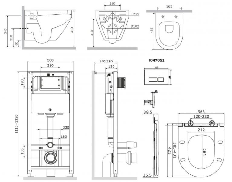 Инсталляция с клавишей смыва:Габариты (ШхВхГ): 500 х 1120-1300 х 250 мм.