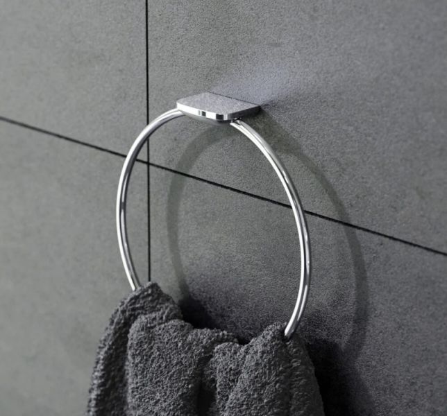Кольцо для полотенец:Материал: сплав металлов. Глянцевое хромированное покрытие приятно на ощупь, устойчиво к помутнению и бытовым повреждениям, сохраняет первоначальный зеркальный блеск на протяжении всего срока службы.