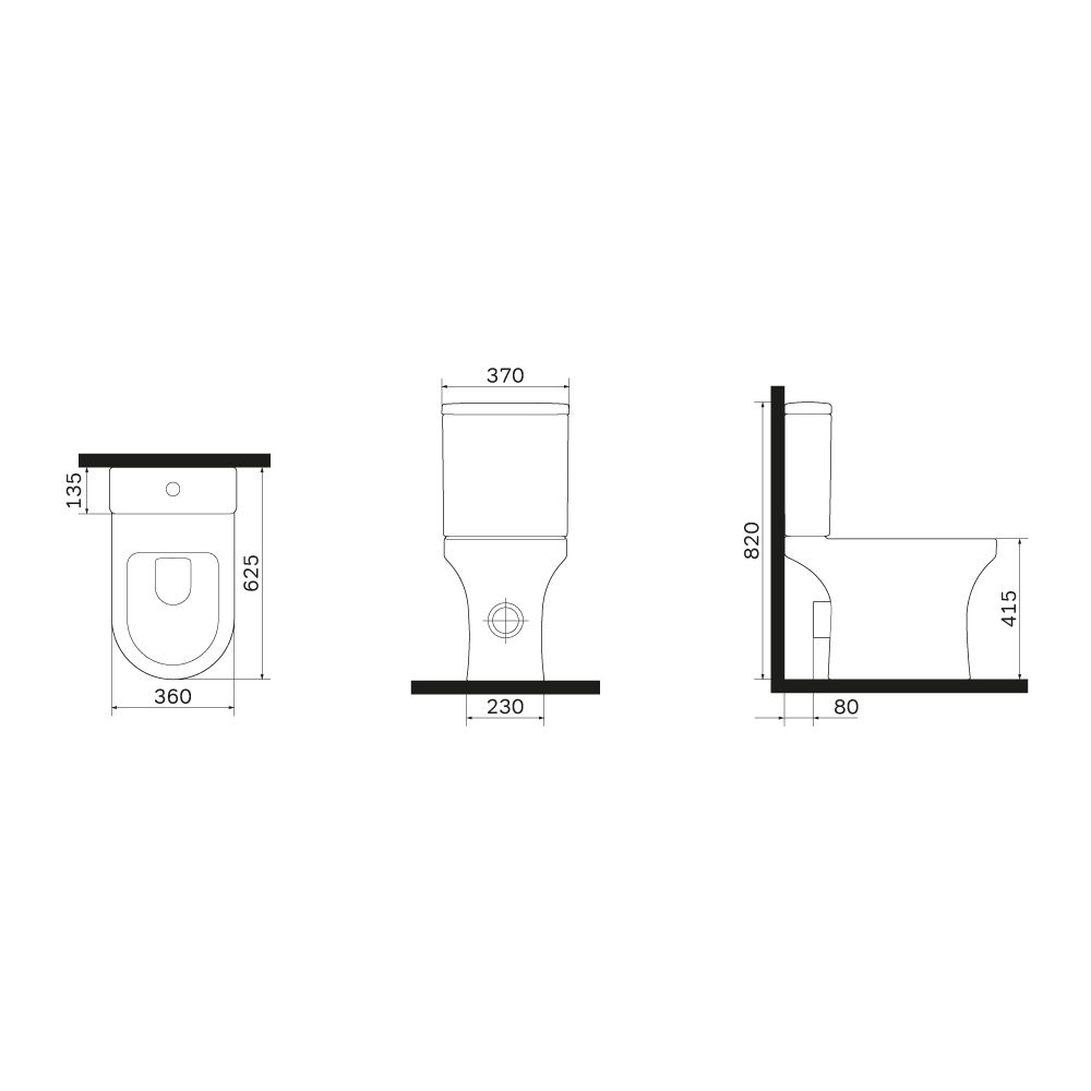 • Прилегание унитаза к стене: