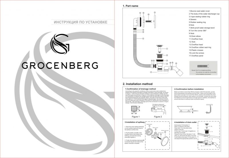 Слив-перелив для ванны GROCENBERG купить в интернет-магазине "Gidro-butik" с гарантией от производителя Большой выбор. Низкие цены Быстрая доставка по Москве и Московской области.