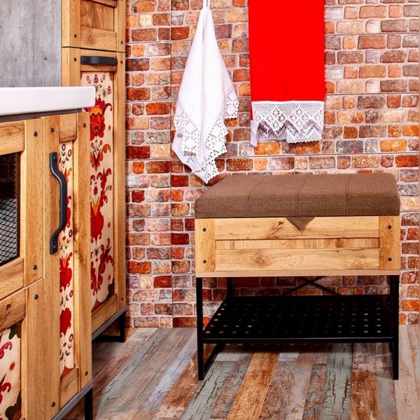 Банкетка Бриклаер Лофт 60 выполнена в современном стиле с металлическими ножками и мягкой крышкой-сиденьем, под которой имеется ящик для хранения различных принадлежностей. Подходит для использования в помещениях с повышенной влажностью и отлично впишется в интерьер ванной комнаты.