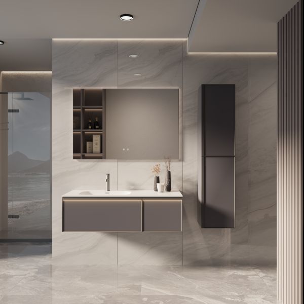 База под раковину Vincea Elise 1200 подвесная, левая, 2 выкатных ящика soft-close, серый матовый