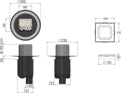 Душевой трап 99x99/50 мм матовый хром Berges Platz Antik 090060