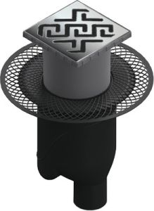 Решетка толщина 3мм, нержавеющая сталь AISI 304 Горловина трапа, пластик Фланец трапапа с переходником, РР Монтажная заглушка, PP Самопромывной S-образный сифон PP: вертикальный выпуск, пропускная способность 48л/мин, монтаж 360° Монтажный ключ, пластик