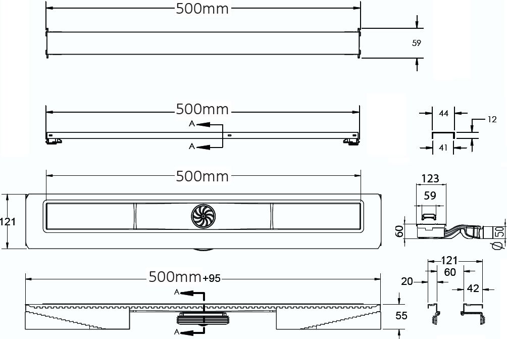 Душевой лоток Berges Wasserhaus C1 Brise 090130 50 Матовый хром
