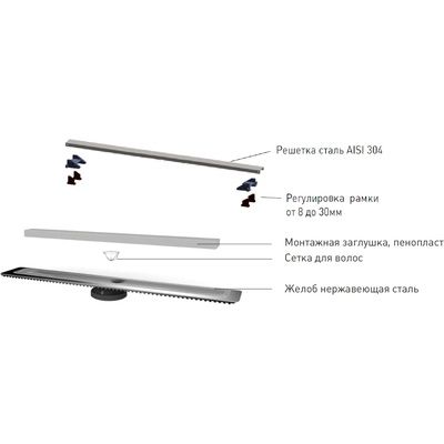 Душевой лоток Berges Wasserhaus C1 Norma 090034 30 Матовый хром – является надежным дренажным устройством в составе современной системы водоотведения. Страна изготовления – Германия, коллекция C1 Norma.Berges Wasserhaus C1 Norma 090034 30 Матовый хром выполнен в одном корпусе с гидрозатвором, благодаря чему достигается герметичность изделия и создается надежный барьер против запахов из системы канализации. Прямоугольную форму решетки сантехнического устройства Berges Wasserhaus можно удачно обыграть при установке устройства вдоль стен, рядом с перегородкой и т.д. Видимая часть конструкции изготовлена из полированной нержавеющей стали, которая отлично сочетается с другими элементами коллекции C1 Norma. Габаритные размеры изделия составляют 39.50х12.10 см при максимальной длине и ширине внешней части 30.0х4.4 см. Дренажное устройство производства Berges Wasserhaus имеет минимальную высоту – тем самым достигается простота установки путем встраивания в пол ванной. Конструкцией предусмотрен вертикальный выпуск сточных вод. Этим достигается высокая пропускная способность лотка Berges Wasserhaus C1 Norma 090034 30 Матовый хром и возможность монтажа в любом месте, независимо от схемы разводки канализационных труб. Пластик, из которого сделан патрубок и элементы слива дренажного устройства Berges Wasserhaus, не боится вредного воздействия влаги, бытовой химии, высокой температуры и прочих разрушающих факторов. Хром матовый цвет наружной решетки лотка Berges Wasserhaus прекрасно сочетается с другими элементами коллекции C1 Norma.