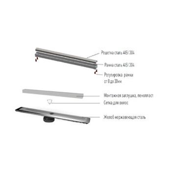 Душевой лоток Berges Wasserhaus B1 Keramik 090014 30 Матовый хром – является надежным дренажным устройством в составе современной системы водоотведения. Страна изготовления – Германия, коллекция B1 Keramik.Berges Wasserhaus B1 Keramik 090014 30 Матовый хром выполнен в одном корпусе с гидрозатвором, благодаря чему достигается герметичность изделия и создается надежный барьер против запахов из системы канализации. Прямоугольную форму решетки сантехнического устройства Berges Wasserhaus можно удачно обыграть при установке устройства вдоль стен, рядом с перегородкой и т.д. Видимая часть конструкции изготовлена из полированной нержавеющей стали, которая отлично сочетается с другими элементами коллекции B1 Keramik. Габаритные размеры изделия составляют 39.50х12.10 см при максимальной длине и ширине внешней части 30.0х6.1 см. Дренажное устройство производства Berges Wasserhaus имеет минимальную высоту – тем самым достигается простота установки путем встраивания в пол ванной. Конструкцией предусмотрен вертикальный выпуск сточных вод. Этим достигается высокая пропускная способность лотка Berges Wasserhaus B1 Keramik 090014 30 Матовый хром и возможность монтажа в любом месте, независимо от схемы разводки канализационных труб. Пластик, из которого сделан патрубок и элементы слива дренажного устройства Berges Wasserhaus, не боится вредного воздействия влаги, бытовой химии, высокой температуры и прочих разрушающих факторов. Хром матовый цвет наружной решетки лотка Berges Wasserhaus прекрасно сочетается с другими элементами коллекции B1 Keramik.