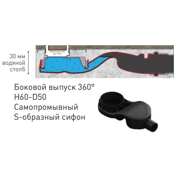 Душевой лоток Berges Wasserhaus B1 Keramik 090116 50 Матовый хром – является надежным дренажным устройством в составе современной системы водоотведения. Страна изготовления – Германия, коллекция B1 Keramik.Berges Wasserhaus B1 Keramik 090116 50 Матовый хром выполнен в одном корпусе с гидрозатвором, благодаря чему достигается герметичность изделия и создается надежный барьер против запахов из системы канализации. Прямоугольную форму решетки сантехнического устройства Berges Wasserhaus можно удачно обыграть при установке устройства вдоль стен, рядом с перегородкой и т.д. Видимая часть конструкции изготовлена из полированной нержавеющей стали, которая отлично сочетается с другими элементами коллекции B1 Keramik. Габаритные размеры изделия составляют 59.50х12.10 см при максимальной длине и ширине внешней части 50.0х6.1 см. Дренажное устройство производства Berges Wasserhaus имеет минимальную высоту – тем самым достигается простота установки путем встраивания в пол ванной. Конструкция имеет горизонтальный выпуск для прямого вывода стоков в канализацию. Высокая пропускная способность делает лоток Berges Wasserhaus B1 Keramik 090116 50 Матовый хром одним из лучших вариантов при эксплуатации как в частных домовладениях, так и помещениях коммерческого назначения – банях, душевых спортзалов и т.д. Пластик, из которого сделан патрубок и элементы слива дренажного устройства Berges Wasserhaus, не боится вредного воздействия влаги, бытовой химии, высокой температуры и прочих разрушающих факторов. Хром матовый цвет наружной решетки лотка Berges Wasserhaus прекрасно сочетается с другими элементами коллекции B1 Keramik.