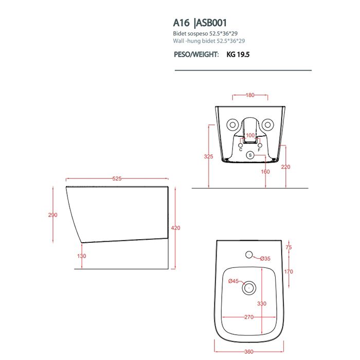 Биде Artceram A16 ASB001 01 00 белоеArtceram A16 Биде подвесное 36х52 см, с 1 отв под смеситель, с креплениями, цвет белый