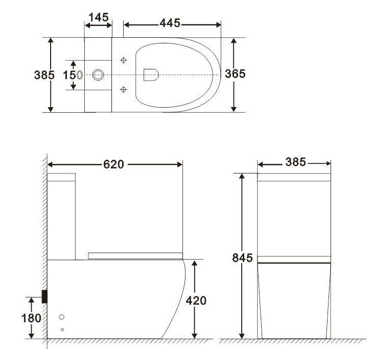 • Прилегание унитаза к стене: