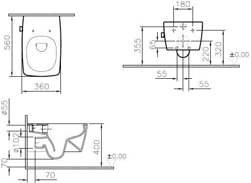 срытые крепления к стене (отсутствие технологических выемок по бокам унитаза под крепления, где могла бы скапливаться пыль и грязь)