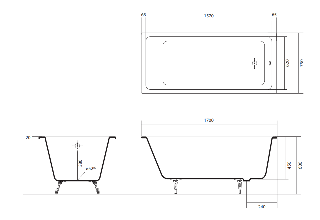 Чугунная ванна Aquatek Альфа AQ8970F-00 170x75см белый