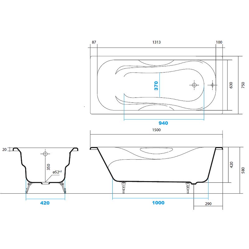 Чугунная ванна Aquatek Гамма 150x75 AQ8050F-00 без антискользящего покрытия