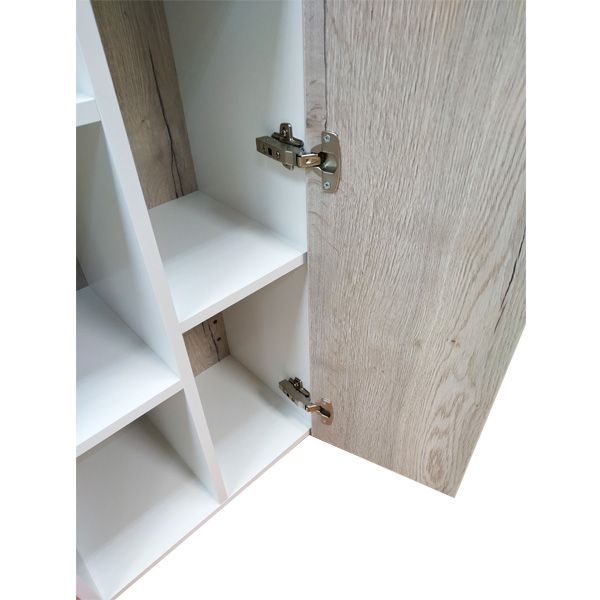 Название: Шкаф-колонна Артикул: Бремен 45 Варианты цвета: Дуб белый Материал: влагостойкое ЛДСП Габариты ШхВхГ: 350*1600*320 мм Подвесная шкаф-колонна с двумя распашными дверцами. Створки оборудована петлями с системой плавного закрывания. За верхней створкой 2 горизонтальные полки, за нижней - одна. Дверцы при установке колонны можно подвесить как в левом, так и в правом варианте