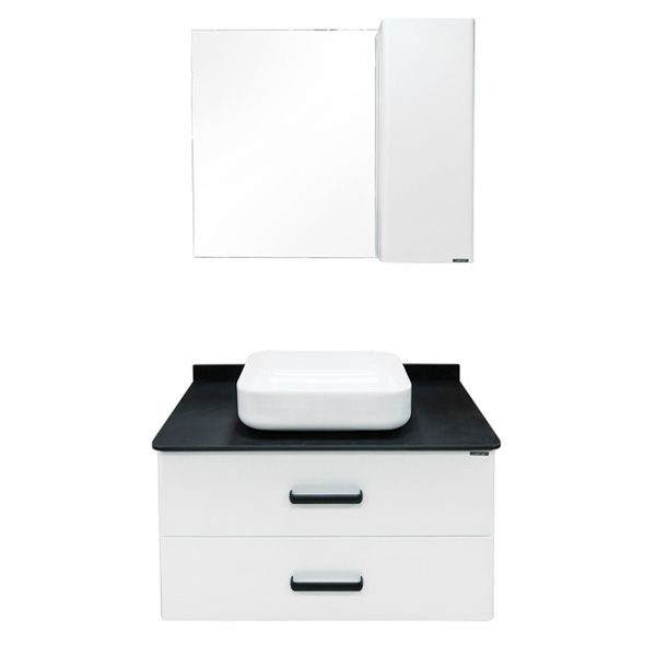 COMFORTY. Тумба-умывальник "Амстердам-95" белая с черной матовой столешницей с раковиной COMFORTY T-Y9378