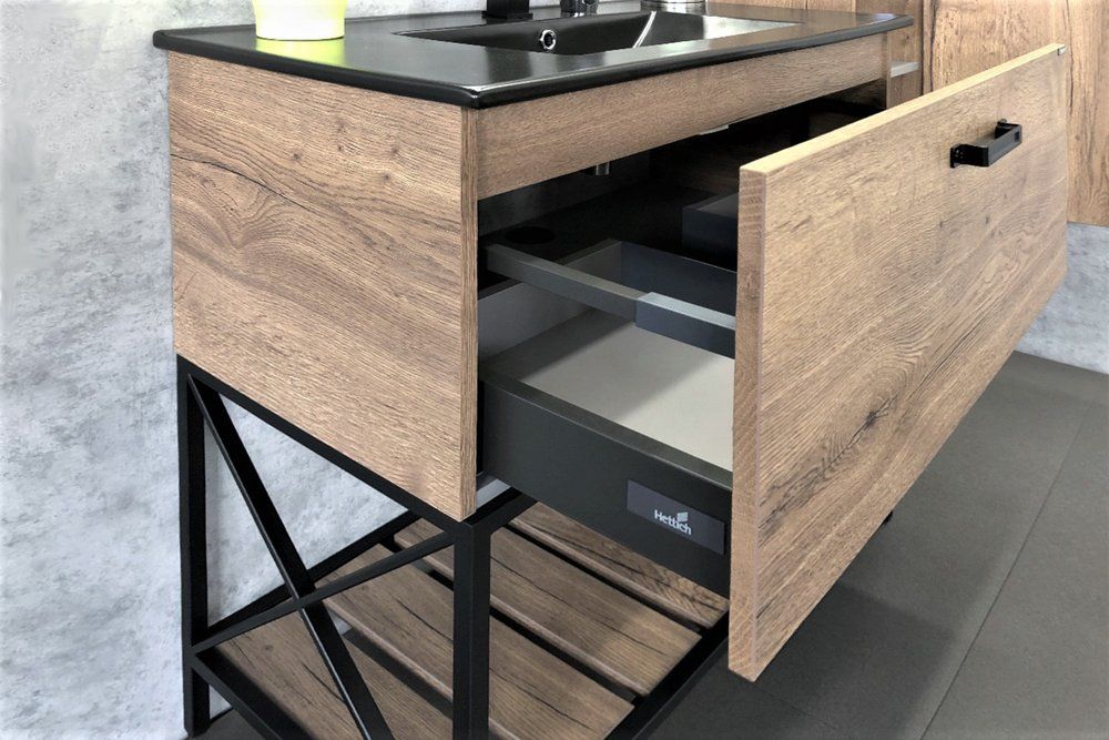 COMFORTY. Тумба-умывальник "Бредфорд-90" дуб темный с белой раковиной COMFORTY 90E