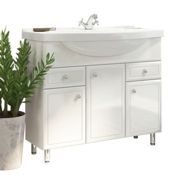 Название: Тумба-умывальник Артикул: Сочи 100 Варианты цвета корпуса: Белый глянец Материал корпуса: влагостойкое ЛДСП Цвет фасада: Белый глянец Материал фасада: МДФ Габариты (ШхВхГ): 1050*880*520 мм Комплектация: Сантек Эльбрус