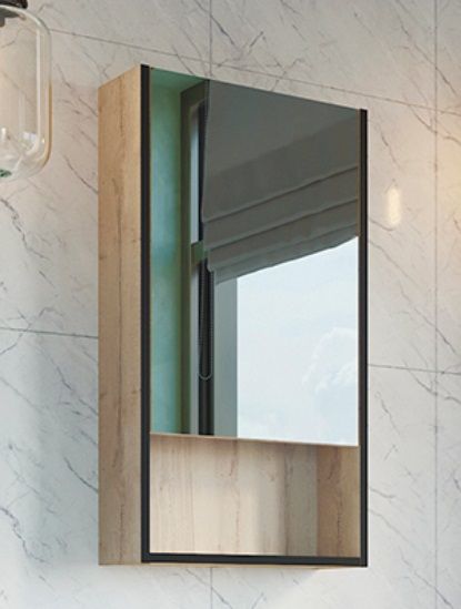 Зеркальное высококачественное полотно с амальгамой на основе серебра. Створка оснащена петлями с системой плавного закрывания. За створкой одна полка.