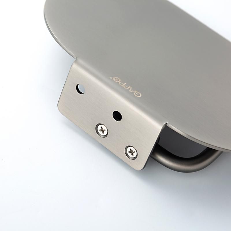 Бумагодержатель с полочкой Gappo G30903-9 - стильное и функциональное решение для вашей ванной комнаты или туалета. Изготовлен из высококачественной нержавеющей стали и металла, что обеспечивает долговечность и надежность в использовании. Оружейная сталь придает изделию элегантный и современный вид, который будет гармонично сочетаться с любым интерьером. Держатель оснащен одним крючком для размещения туалетной бумаги.