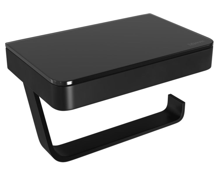 Держатель для туалетной бумаги Lemark Glass Line 9722030 с полкой чёрный матовый/чёрное стекло